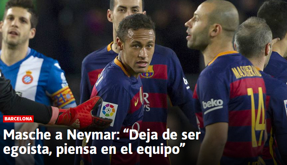 巴萨队内一直给人以团结的良好印象,马斯切拉诺之所以站出来指责内马尔,恐怕更多的原因还是在内马尔自己身上。赛季下半段,内马尔场上的表现急转直下,在场下也经常被媒体揪住小辫子。
