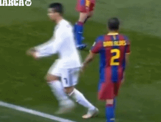 1994-95赛季的一场世纪大战,皮球被踢出边线,正好滚到巴萨主帅克鲁伊夫脚下,此时身穿皇马球衣的前巴萨球员米歇尔-劳德鲁普试图来要球,但克鲁伊夫没有把球给他,而是踢给了另外一位皇马球员。