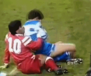 1992-93赛季,在一次拼抢中,当时效力于塞维利亚的马拉多纳踢到对方面部,对方球员血流不止,马拉多纳赶忙上前检查对手的伤势,这时候,塞维利亚主教练比拉尔多则全然不顾对方球员的安危,大声要求球员继续进攻,“踩过他去”。
