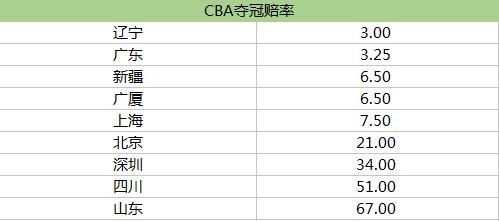 CBA夺冠赔率:辽宁广东领跑 广厦上海进前五