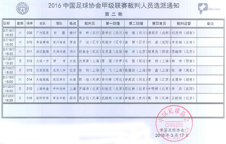 3月17日,天朝足协官方网站公布了中甲联赛第二轮的裁判员选派通知文件。然而在这份公告中梅州客家被误写成了广州客家,莫名其妙地被迫搬迁去了别的城市。
