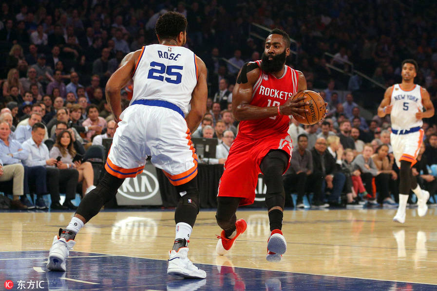哈登背靠背30+15比肩魔术师 火箭3场15+三分创历史