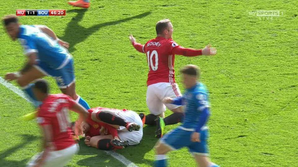 在这起场上的冲突中,伯恩茅斯后卫明斯先是铲球放倒了鲁尼,随后起身回防过程中直接踩到了伊布的头部,主裁判弗兰德这于这次犯规并未作出任何表示。